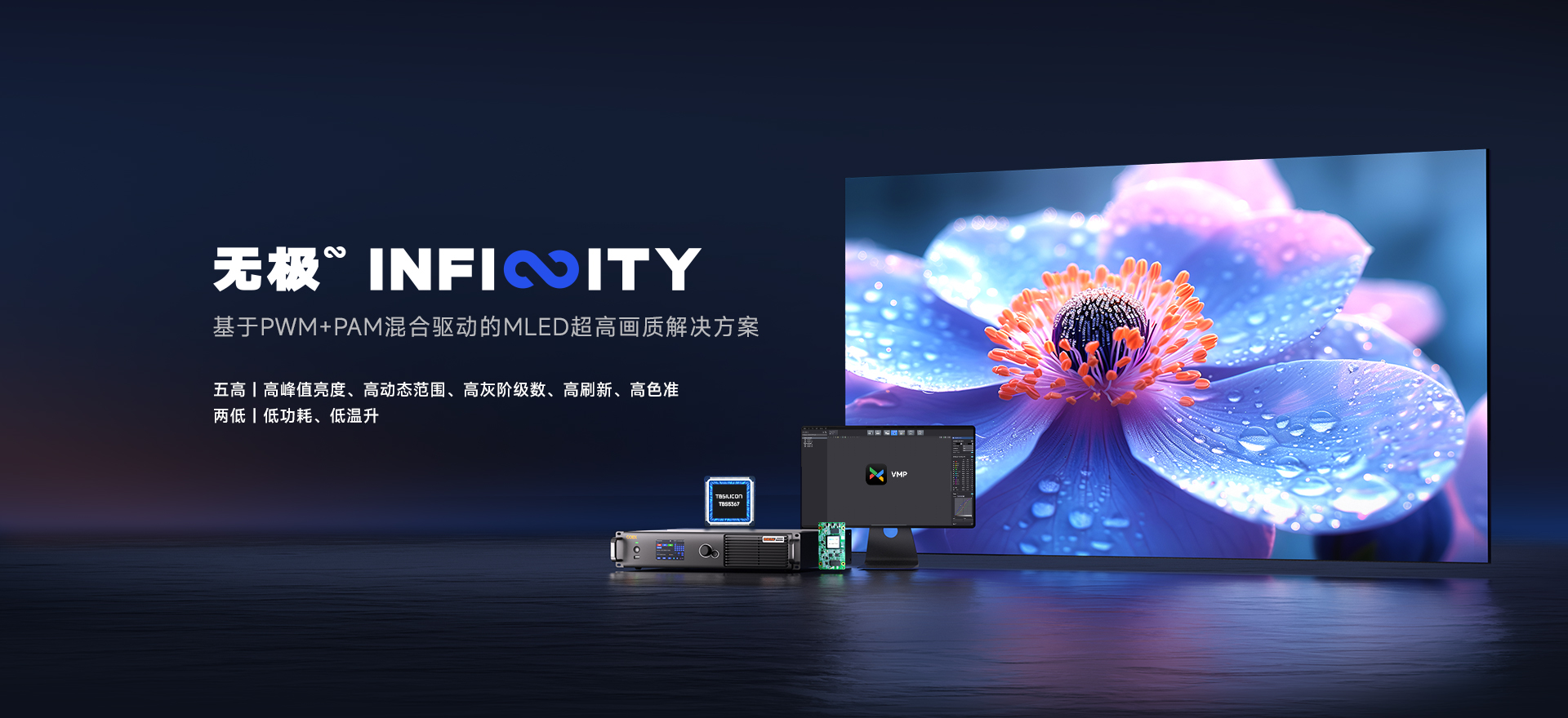基于PWM+PAM混合驅動的MLED超高畫質解決方案,通過控制系統、智能算法、全灰階校正與PWM+PAM混合驅動IC的深度融合,實現全鏈路技術突破,呈現非凡的顯示效果